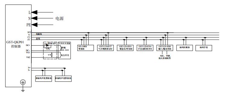 GST-QKP01火災(zāi)報(bào)警控制器、氣體滅火控制器(簡(jiǎn)稱為GST-QKP01)是海灣公司為適應(yīng)工程設(shè)計(jì)的需要而開發(fā)的。GST-QKP01為典型的氣體滅火控制裝置,可配接感煙/感溫/火焰探測(cè)器、手動(dòng)報(bào)警按鈕、緊急啟/停按鈕、聲光警報(bào)器、氣體噴灑指示燈、手自動(dòng)轉(zhuǎn)換開關(guān)以及輸出模塊等,具有火災(zāi)探測(cè)和氣體滅火控制功能,可實(shí)現(xiàn)1個(gè)防火區(qū)的火災(zāi)報(bào)警和氣體滅火控制。GST-QKP01滿足GB 4717-2005 《火災(zāi)報(bào)警控制器》和GB 16806-2006《消防聯(lián)動(dòng)控制器》中有關(guān)氣體滅火控制器的要求,為室內(nèi)使用設(shè)備。