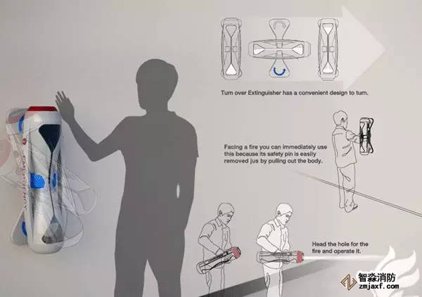 由設計師DMoisesHansen設計的手持式新型滅火器,不僅在外形還是在使用上都很簡單,讓使用者在使用時一看便知。這便是簡單粗暴有效!
