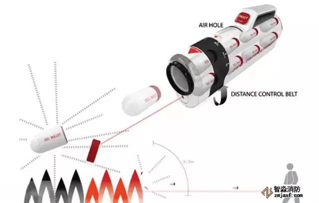 這款滅火器適用于超大型的火災,將滅火物質(zhì)儲存在了類似于膠囊的小容器中,它借鑒了玩具槍的設計,而每個滅火的小容器都是“子彈”。一旦火災發(fā)生時,人們只需抓起“滅火槍”對準火場“開火”即可。這樣不僅有利于滅火物質(zhì)的迅速散開,而且可以在更遠的距離進行滅火,因此安全系數(shù)更高。