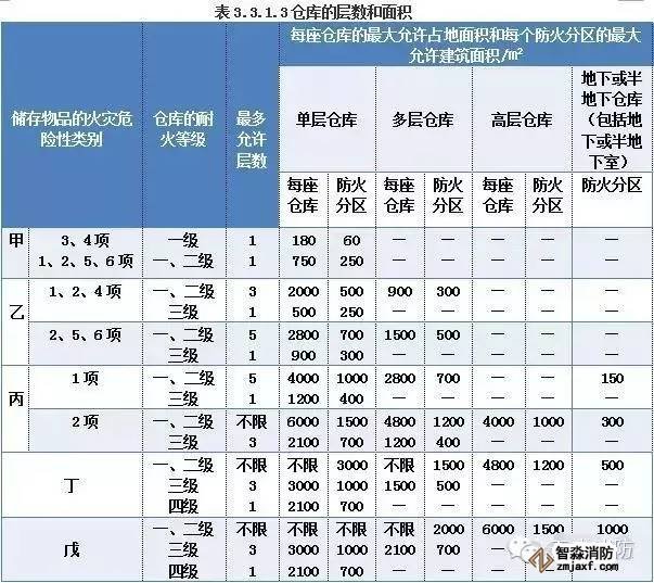 庫房每個防火墻間面積及最大允許占地面積應符合表 3.3.1.3 的要求。 在進行防火分區(qū)時,應注意以下幾點: