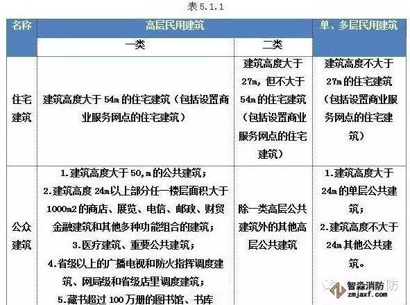 5.1.1民用建筑根據(jù)其建筑高度和層數(shù)可分為單、多民用建筑和高層民用建筑。高層民用建筑根據(jù)其建筑高度、使用功能和樓層的建筑面積可分為一類和二類。民用建筑的分類應符合表5.1.1的規(guī)定。