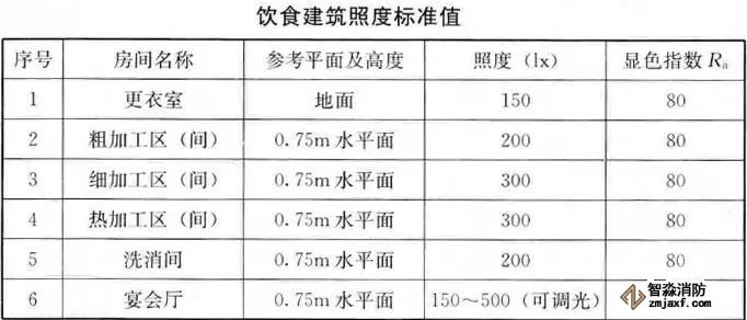 3、飲食建筑各類房間照度的標(biāo)準(zhǔn)值應(yīng)符合下表的規(guī)定。