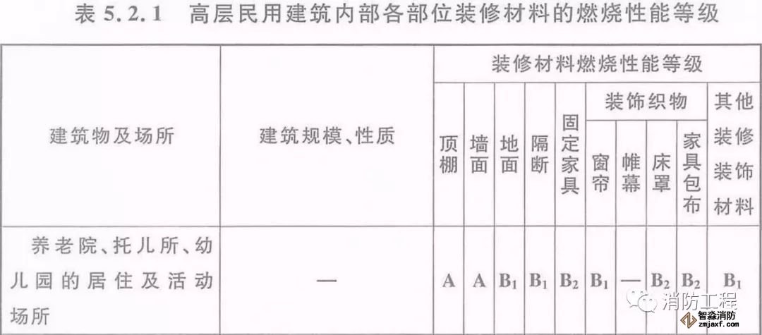 2、當(dāng)設(shè)置在高層民用建筑時(shí),內(nèi)部各部位裝修材料的燃燒性能等級(jí),不應(yīng)低于《建筑內(nèi)部裝修設(shè)計(jì)防火規(guī)范》5.2.1的規(guī)定。