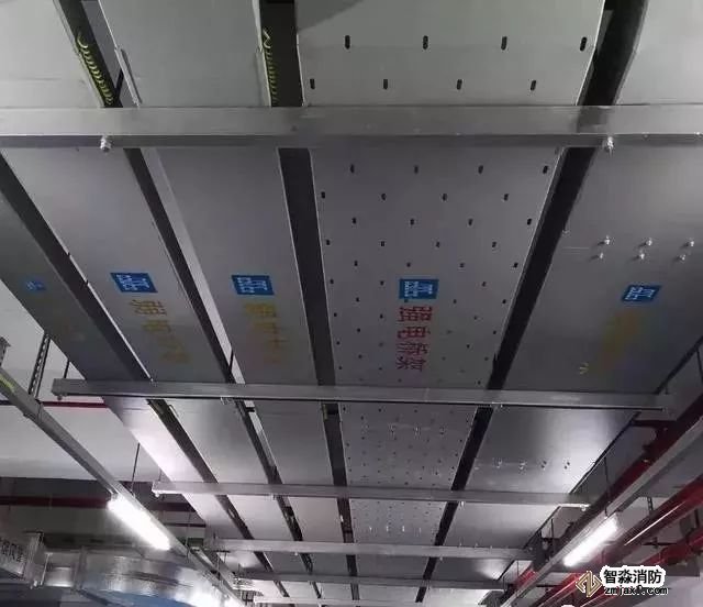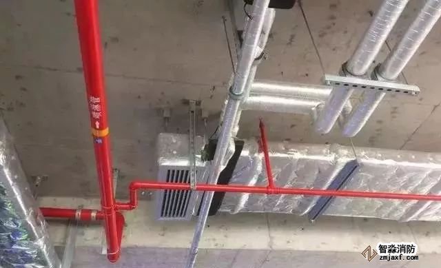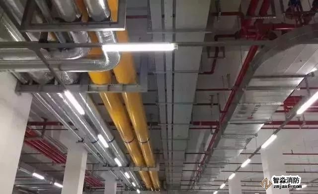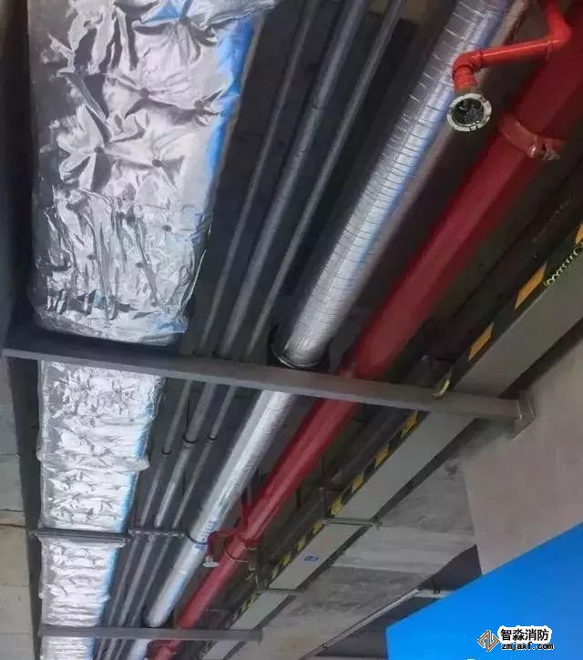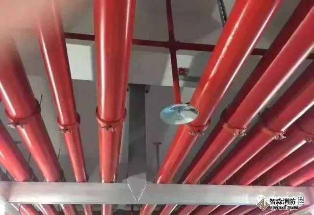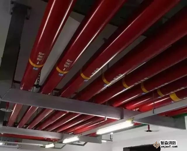 消防噴淋管道間距一致,標識清楚、成排成線。