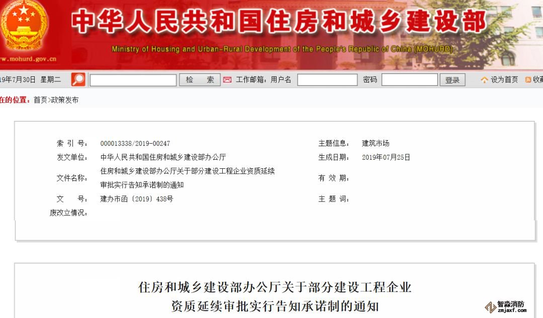 關于部分建設工程企業資質延續審批實行告知承諾制的通知
