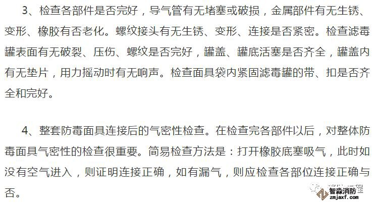 2、使用前應檢查部件和結合部的氣密性,若發生漏氣應查明原因。例如,面罩選擇不合適或佩戴不正確;橡膠主體有破損;濾毒罐(盒)破裂;面罩的部件連接松動等等。面具保持良好的氣密狀態才能使用。