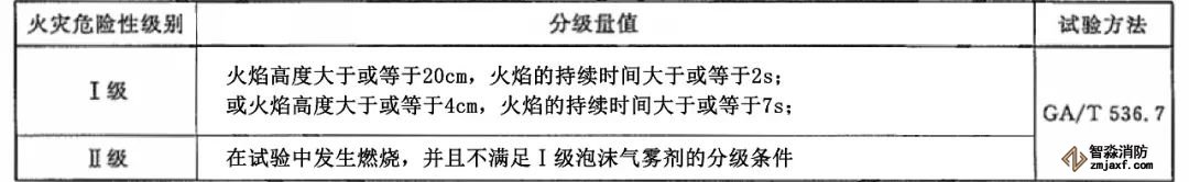 泡沫氣霧劑火災危險性分級方法見下表: