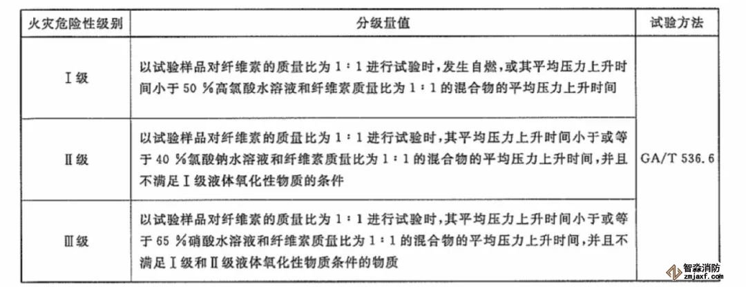 液體氧化性物質火災危險性分級方法見下表: