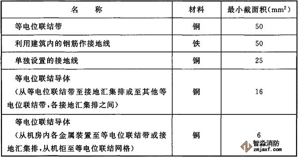 8、等電位聯結帶、接地線和等電位聯結導體的材料和最小截面積應符合下表的規定。