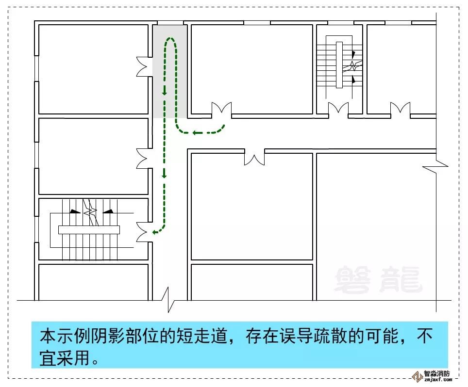 4、沒有安全出口的回形(環形)疏散路線,不應采用。