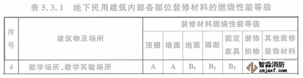 六、培訓(xùn)班設(shè)置在地下民用建筑時,內(nèi)部各部位裝修材料的燃燒性能等級,不應(yīng)低于《建筑內(nèi)部裝修設(shè)計(jì)防火規(guī)范》5.3.1的規(guī)定,參照“教學(xué)場所”執(zhí)行。