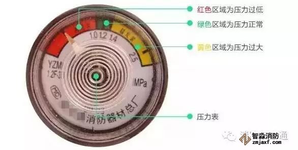 2、儲壓式滅火器壓力符合要求,壓力表指針在綠區;