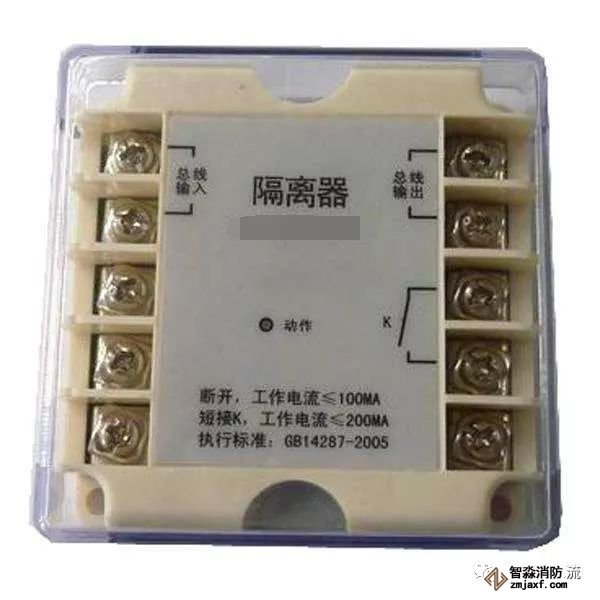 在總線制火災自動報警系統中,因各種原因有時會出現某一局部總線出現故障(例如短路),可能會造成整個報警系統全線癱瘓的情況。而使用隔離器串入總線的各段或串入主線與支線的交界處,一旦出現總線回路某處短路,隔離器就會將發生故障的總線部分與整個系統隔離開來,以保證系統的其它部分能夠正常工作。