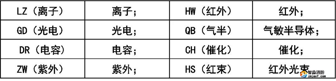 火災(zāi)探測(cè)器分類(lèi)代號(hào):