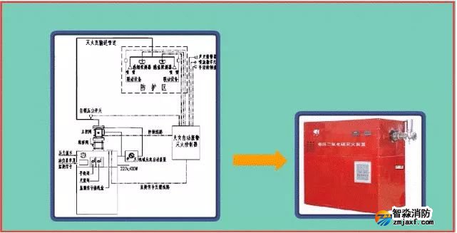 該系統(tǒng)由滅火劑儲(chǔ)存裝置、總控閥、驅(qū)動(dòng)器、噴頭、管道超壓泄放裝置、信號(hào)反饋裝置、控制器等組成。