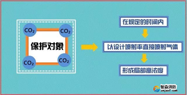 局部應(yīng)用滅火系統(tǒng)指在規(guī)定的時(shí)間內(nèi)向保護(hù)對(duì)象以設(shè)計(jì)噴射率直接噴射氣體,在保護(hù)對(duì)象周?chē)纬删植扛邼舛龋⒊掷m(xù)一定時(shí)間的滅火系統(tǒng)。