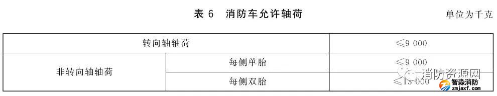 根據《消防車第1部分:通用技術條件》(GB7956.1-2014)5.1.5.1要求,消防車軸荷應符合表6的規定: