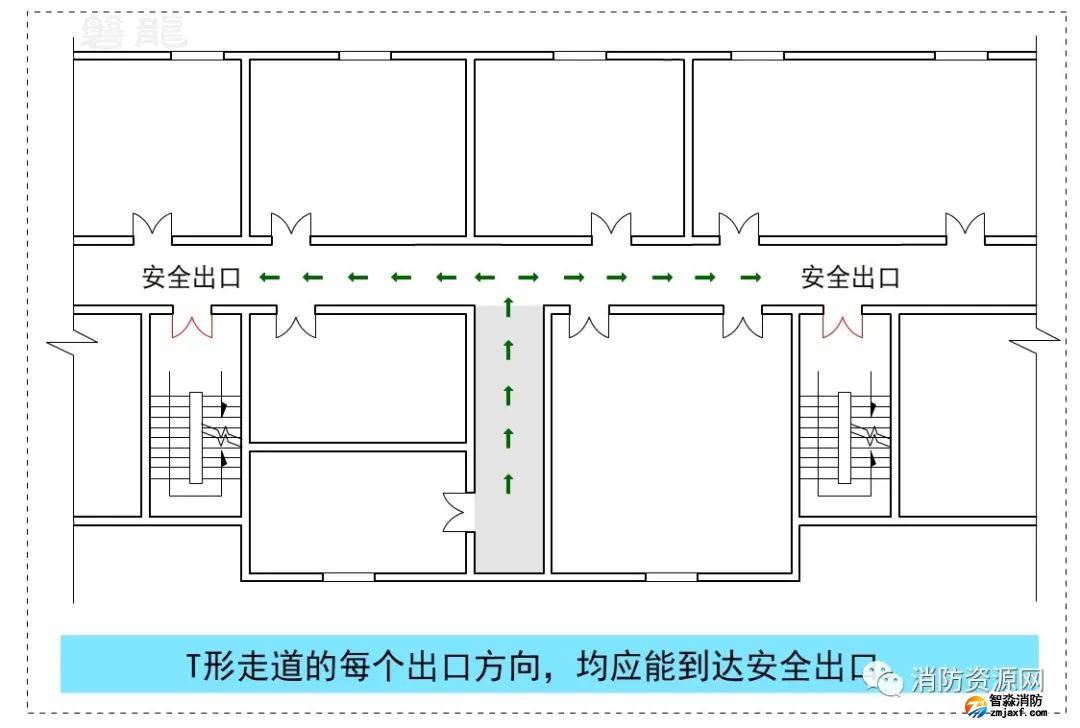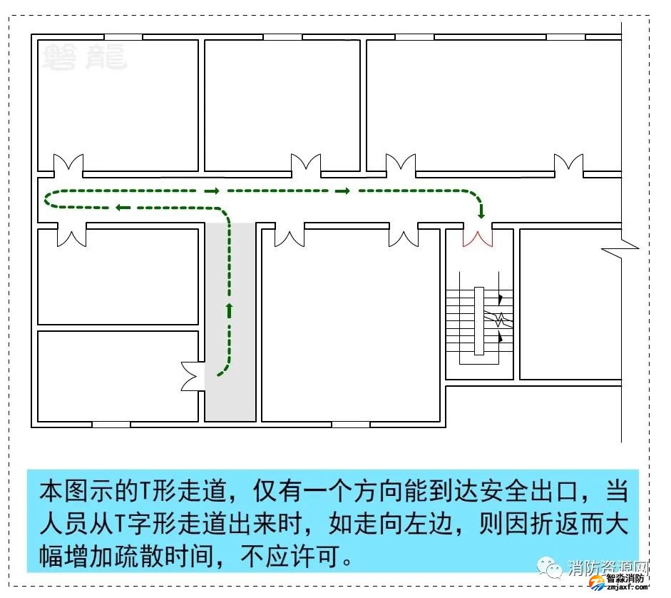 四、關(guān)于T形走道的疏散方案及疏散距離計(jì)算,參專題: T形走道-宜與忌!疏散距離計(jì)算規(guī)則!