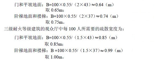 實際工程設計可根據每個疏散門平均負擔的疏散人數,按上述辦法對每個疏散門的寬度進行必要的校核和調整。